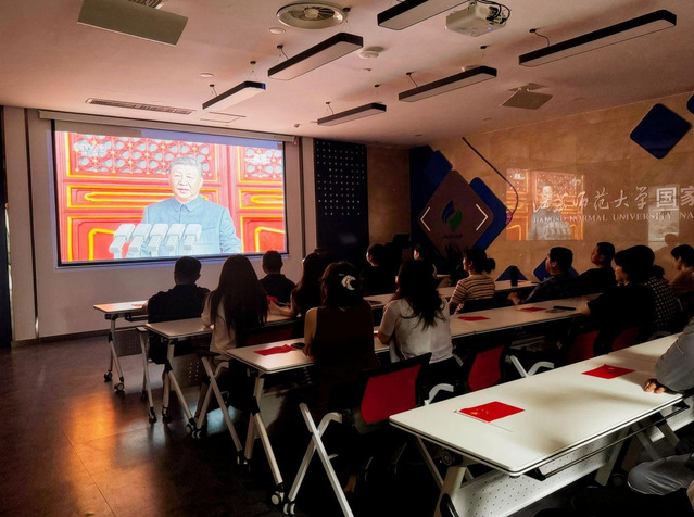9月3日上午,江苏师范大学科技园有限公司组织全体员工在文峰大厦二楼路演室集中观看了纪念中国人民抗日战争暨世界反法西斯战争胜利80周年大会直播,共同见证重要时刻,接受爱国主义教育。